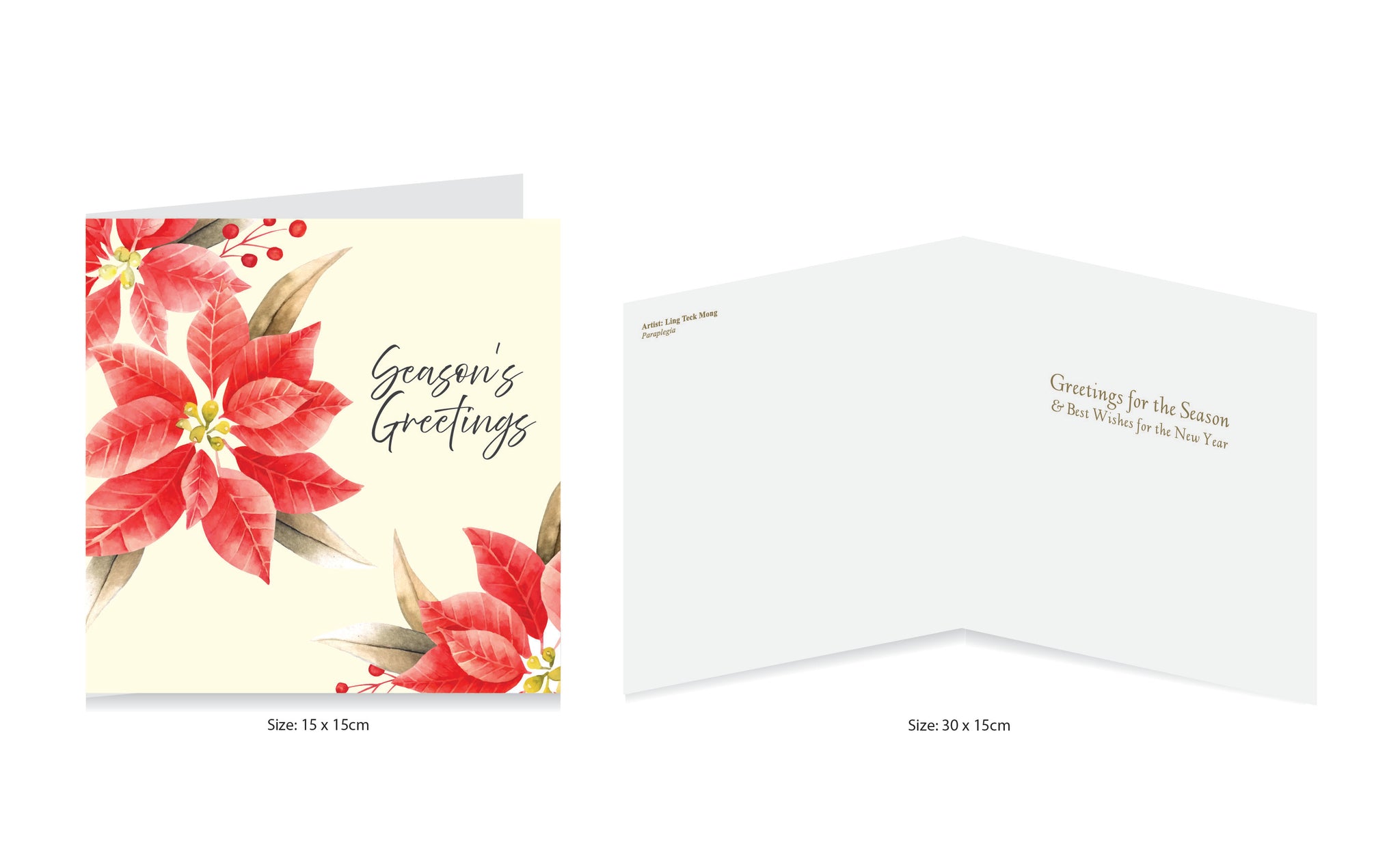Inside Page: Feature a greeting message on the right panel and artist name on the left panel in print.