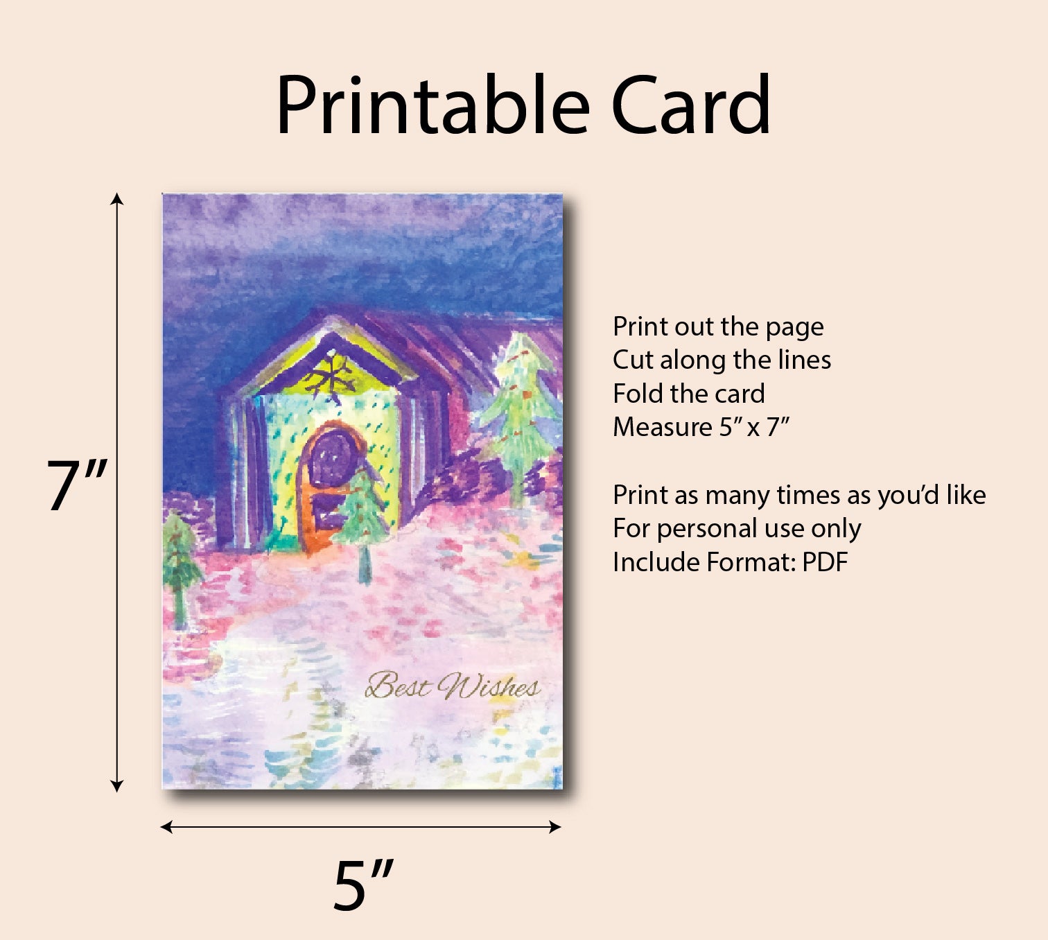 Once you have downloaded the PDF, you can print on either a standard 8.5"x11" piece of paper or use card stock paper for a more refined look. Cut along the solid lines and then fold the paper in half, using the dotted lines as a guide. The finished card should measure 5"x7", and fits a standard A7 envelope.